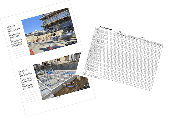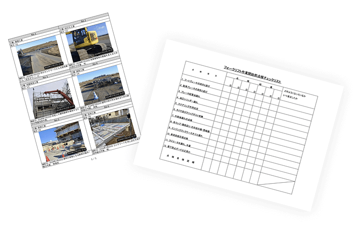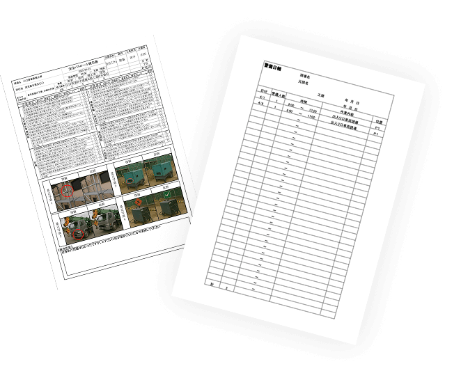 写真台帳、点検表、KY安全指示書など、各種報告書に対応! -