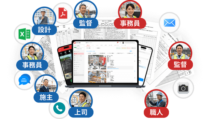写真データは写真データはLINE、書類はメール、図面はクラウドストレージ…と、連絡手段やデータ共有先が統一されていないため、情報が分散している。