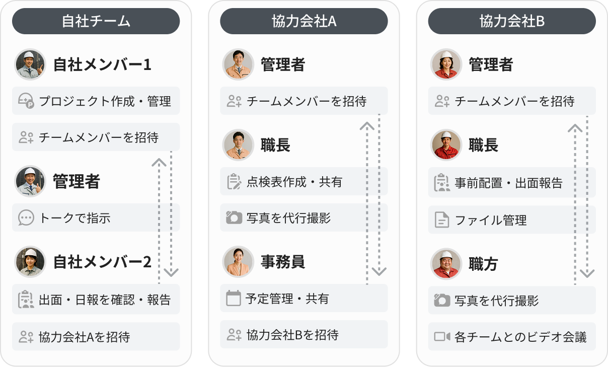 フリープランを無制限・無料招待して協力会社とも共同運用が可能!