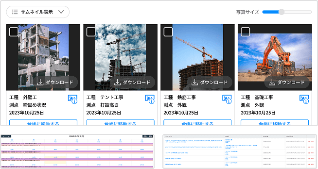 ワンタップで写真台帳を自動生成、工事写真の業務は現場で完了します!