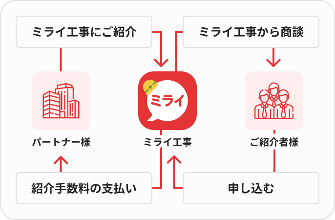 ミライ工事に関心があるお客様をご紹介していただけるパートナー様を募集しております。